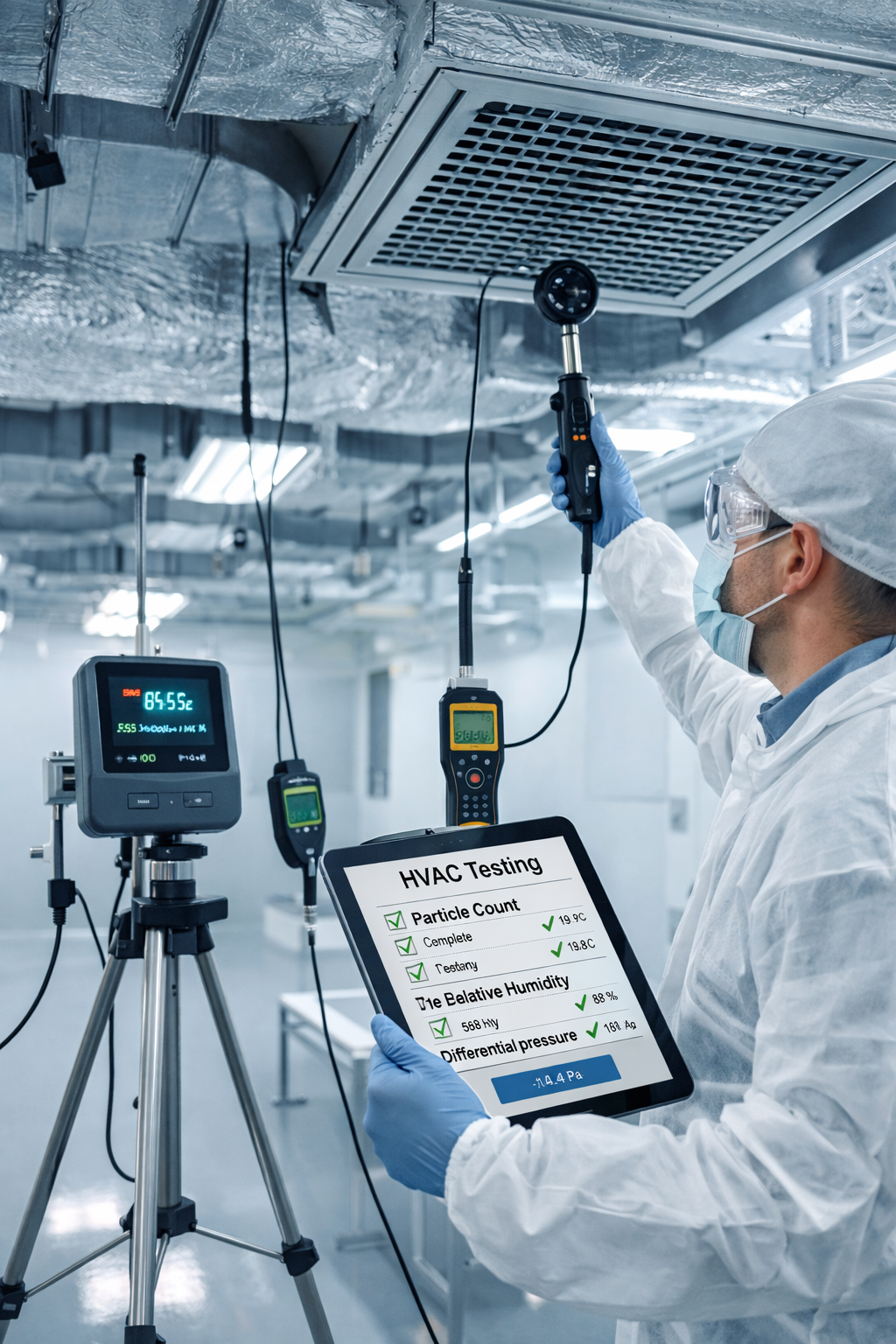 La validación de sistemas HVAC es un proceso documentado que demuestra que los sistemas de calefacción, ventilación y aire acondicionado son aptos para su uso previsto, garantizando el control ambiental, la prevención de la contaminación y el cumplimiento de las Buenas Prácticas de Manufactura (BPM / GMP).